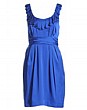 Poly spandex fully lined dull satin dress with ruffle neck detail tie back waist.