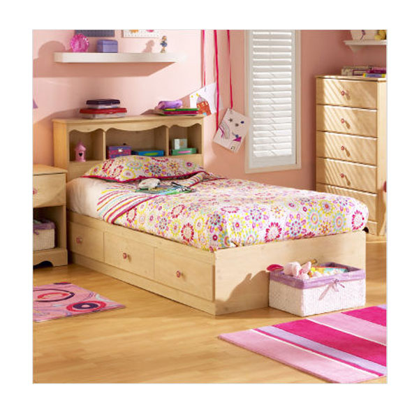 The Lily Rose Mates Bed and Bookcase Headboard is constructed of a durable particleboard with romantic pine finish. It is a great addition to the décor of your little girl’s bedroom with flower accents.Also its three deep storage drawers, located conveniently beneath the bed, makes this design both attractive and functional. The Lily Rose Collection is a perfect fit for any fine young lady. South Shore's stylish and family-friendly furniture is made of laminated engineered wood, which gives it great strength and durability. They use wood panels entirely made from recovered and recycled material. While they do their share to preserve the environment by conserving our forests, South Shore Industries makes no compromise when it comes to quality and product