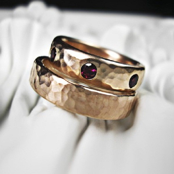 Ruby and Gold Wedding Ring Set