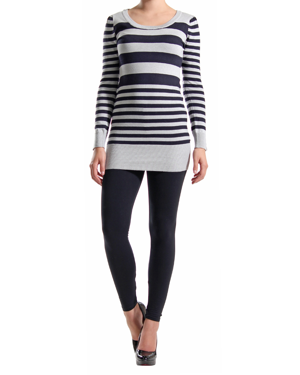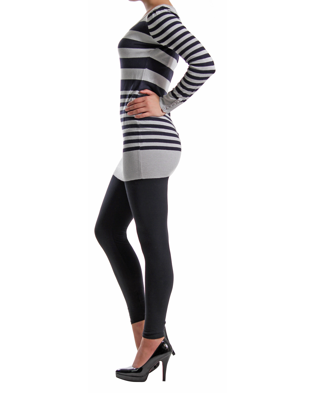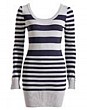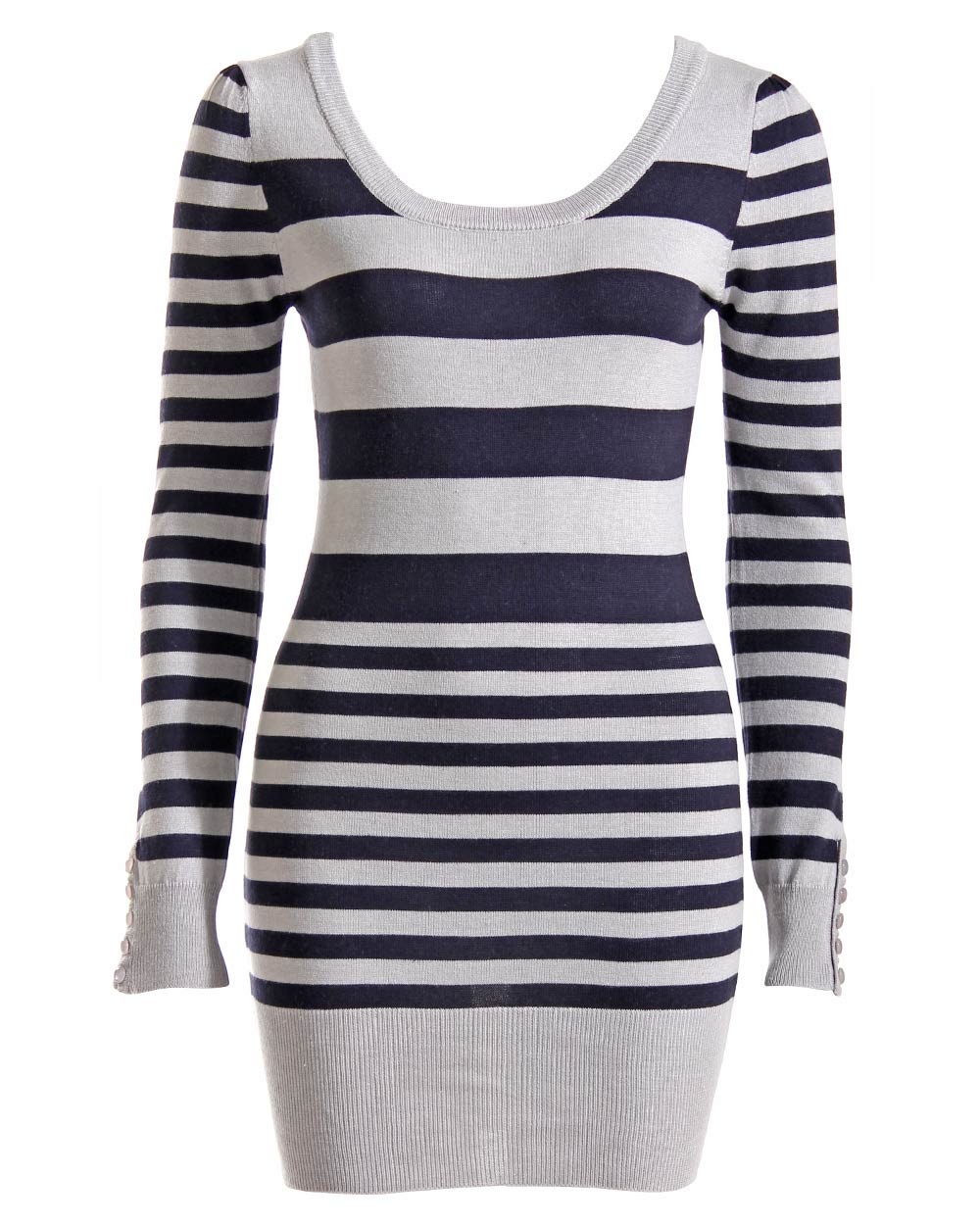 50% cotton 50% acrylic long sleeve dress, features boat neckline and is fitted through the body.