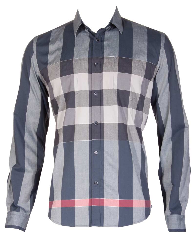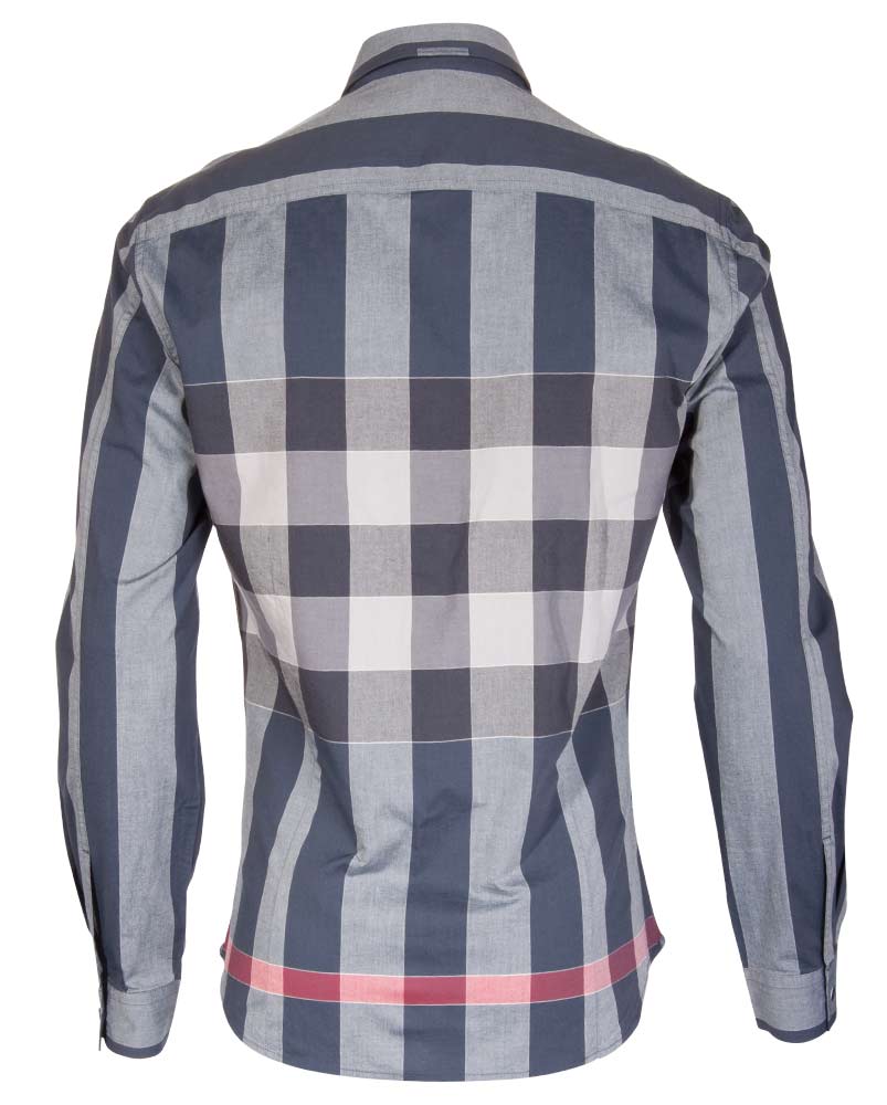 Slim fit, large pattern urban shirt. This shirt gives an overall fitted look and places emphasis on the chest and shoulders. The fabric is compact cotton in a combination of checks and stripes. This slim shirt features inset chest pockets and twin stitched seams. Made from 100% Cotton. Available in navy and stone only.