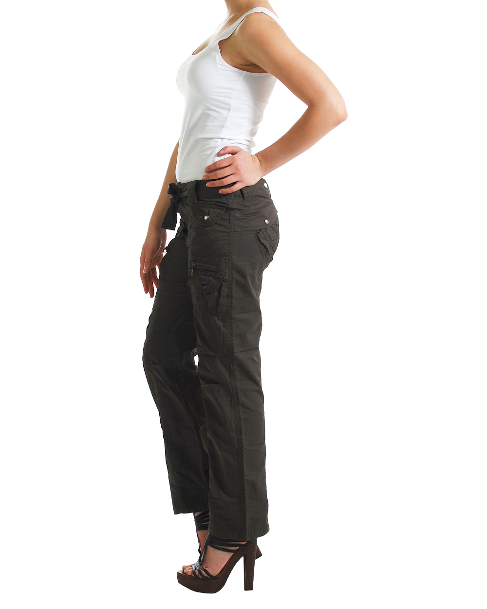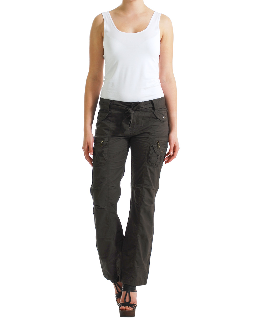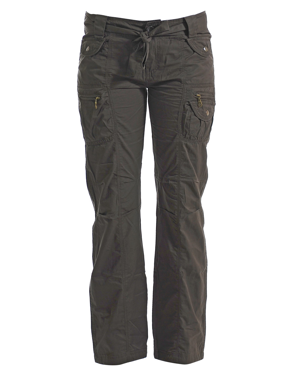 65% Cotton, 35%Ppolyester cargo pants with detail stiching,pockets and a self tie waist belt.