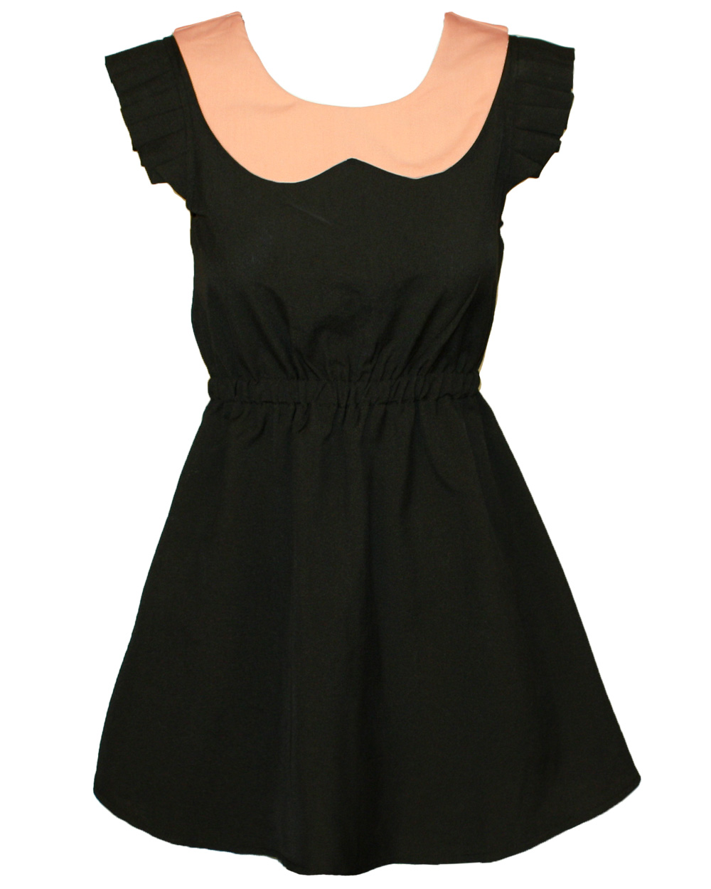 contrast collar pleated s/slv dress